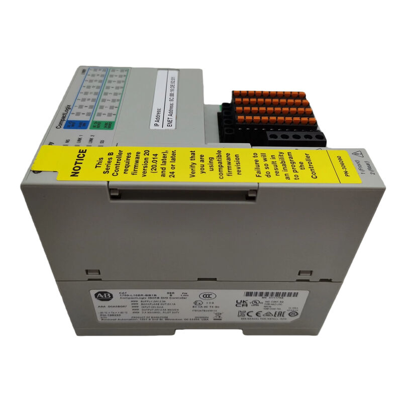 Rockwell xác định đây là bộ điều khiển CompactLogix L16 với 384 KB bộ nhớ người dùng, tích hợp 16 đầu vào kỹ thuật số và 16 đầu ra kỹ thuật số, hai cổng Ethernet với khả năng DLR, tối đa 6 mô-đun mở rộng cục bộ, và một thẻ SD 1 GB đi kèm bộ điều khiển.